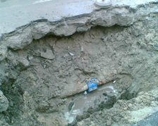 Az emiatti útfelbontás képeiből nem csak ez derül ki, hanem más is. Ha jól megnézzük az egész út alapja nem vastagabb mint 10 cm. Ezért a nagyobb járművek komoly földmozgást okoznak. Persze ezen az új szőnyeg nem változtatott semmit.