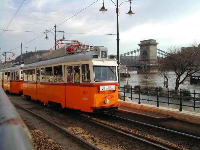 És ha még küzdött a fotós egy kicsit, lefotózhatta az 50 éves járműpárost a háttérben a 150 éves Lánchíddal: